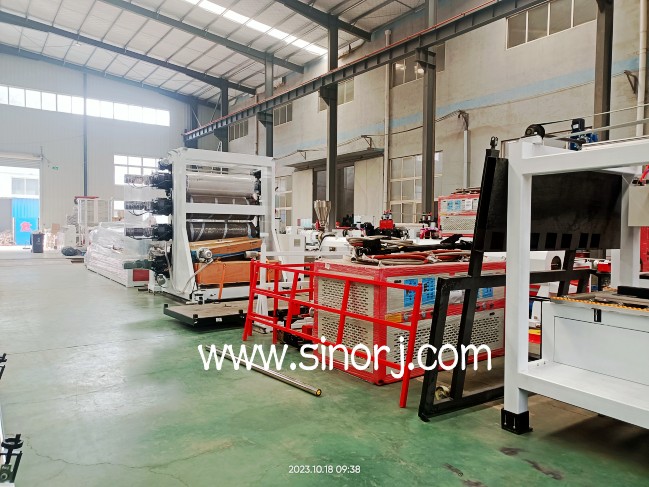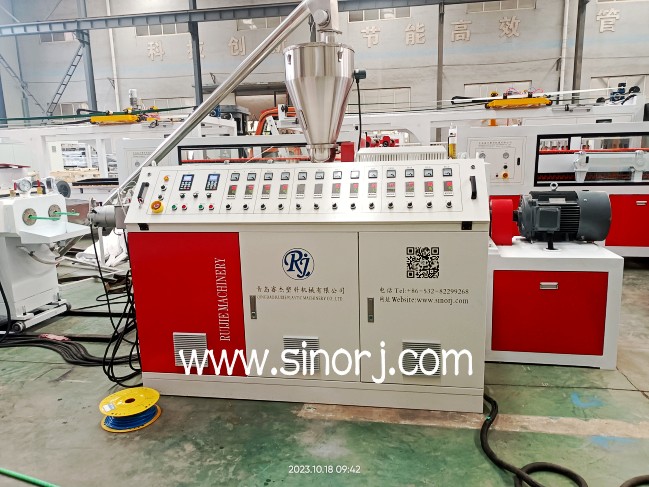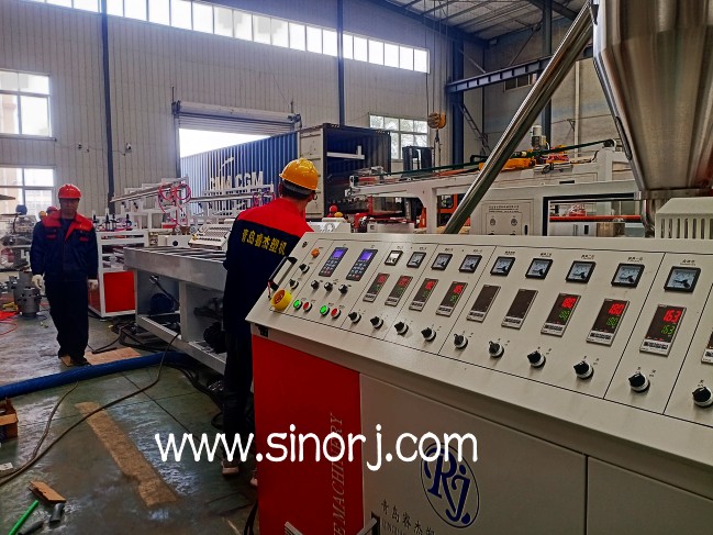 一出二pvc穿線管生產線試機與pvc仿大理石板生產線裝柜發貨同時進行中。。。。。。